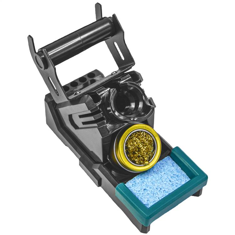 Паяльная станция МЕГЕОН 00348 сконструирована для экономии места на рабочем столе за счет объединения дымоуловителя и мощного паяльника.