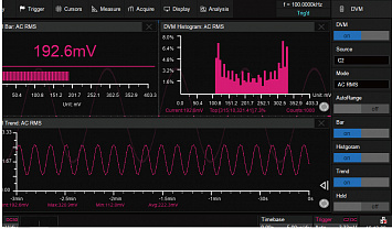 Высокая скорость обновления экрана до 500.000 осц./сек. Режим сегментированной памяти, HISTORY. Интерполяция - Sin X/х, линейная. Автоматические (до 38-и параметров) и курсорные измерения. Математические функции, БФП. Режим «Поисковая машина» для поиска событий по условиям заданным пользователем.